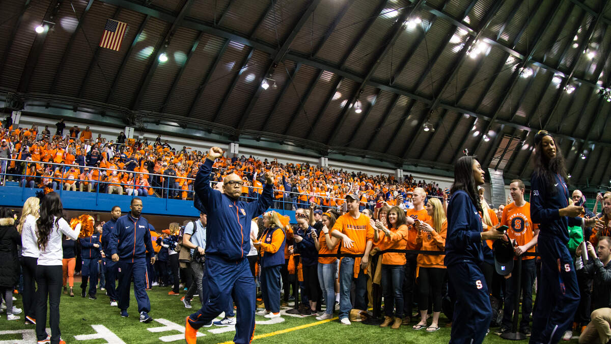 This...is different than any school assembly/pep rally I ever had. The teacher in the yellow pants OWNED it!!